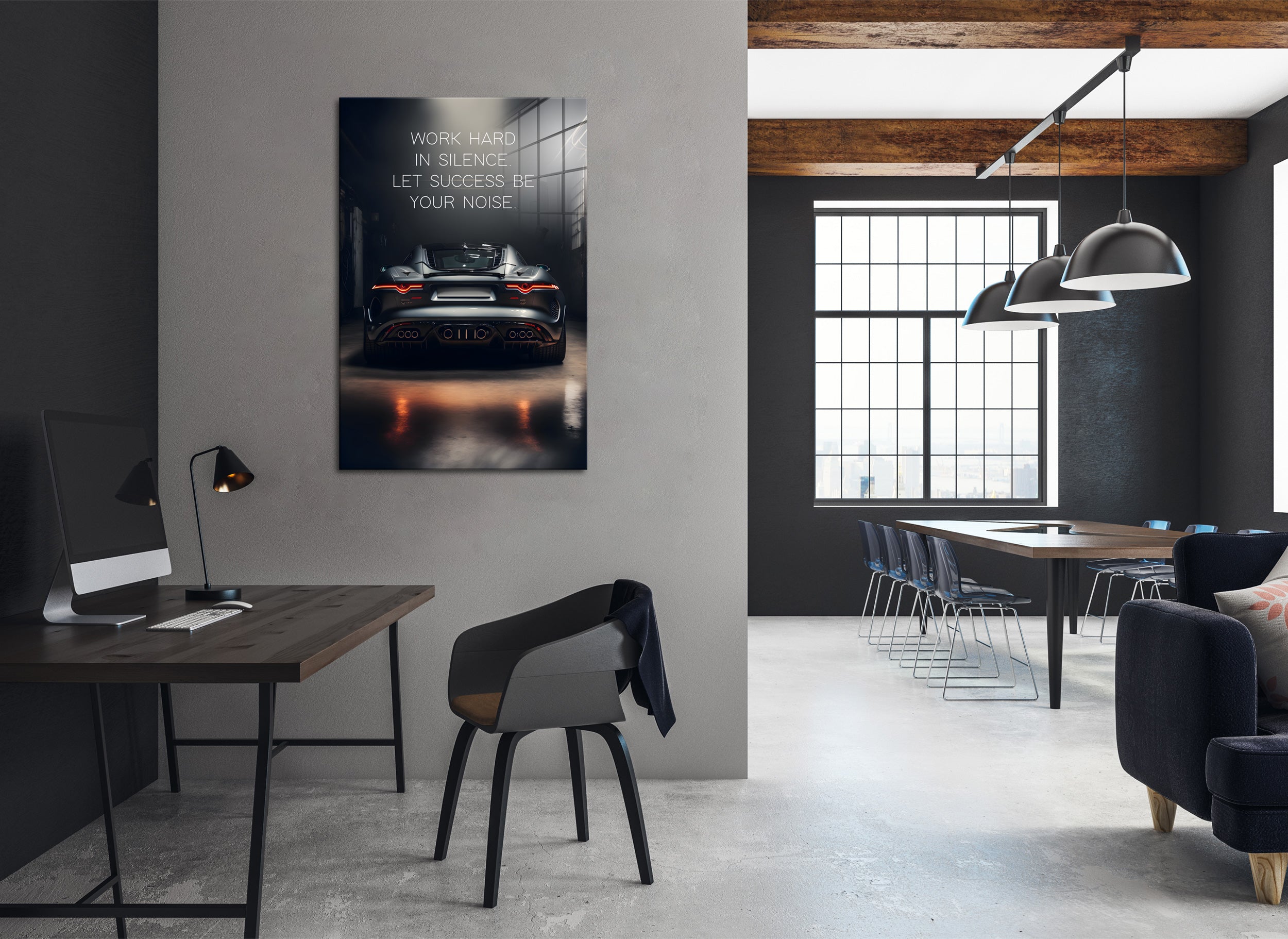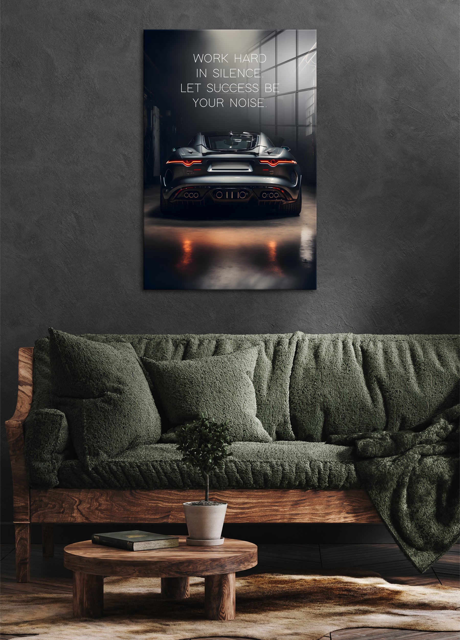 Glasbild - Work hard black car