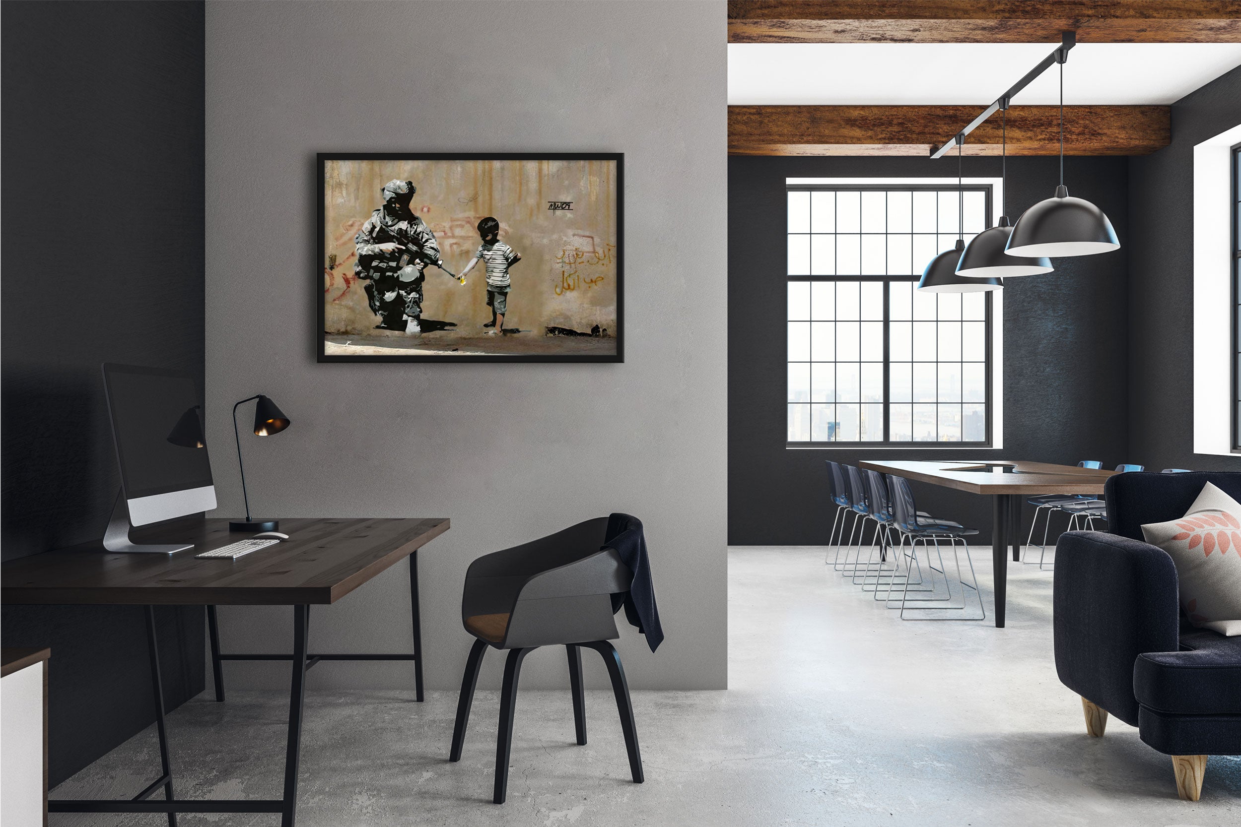 Poster im Rahmen - Kind und Soldat