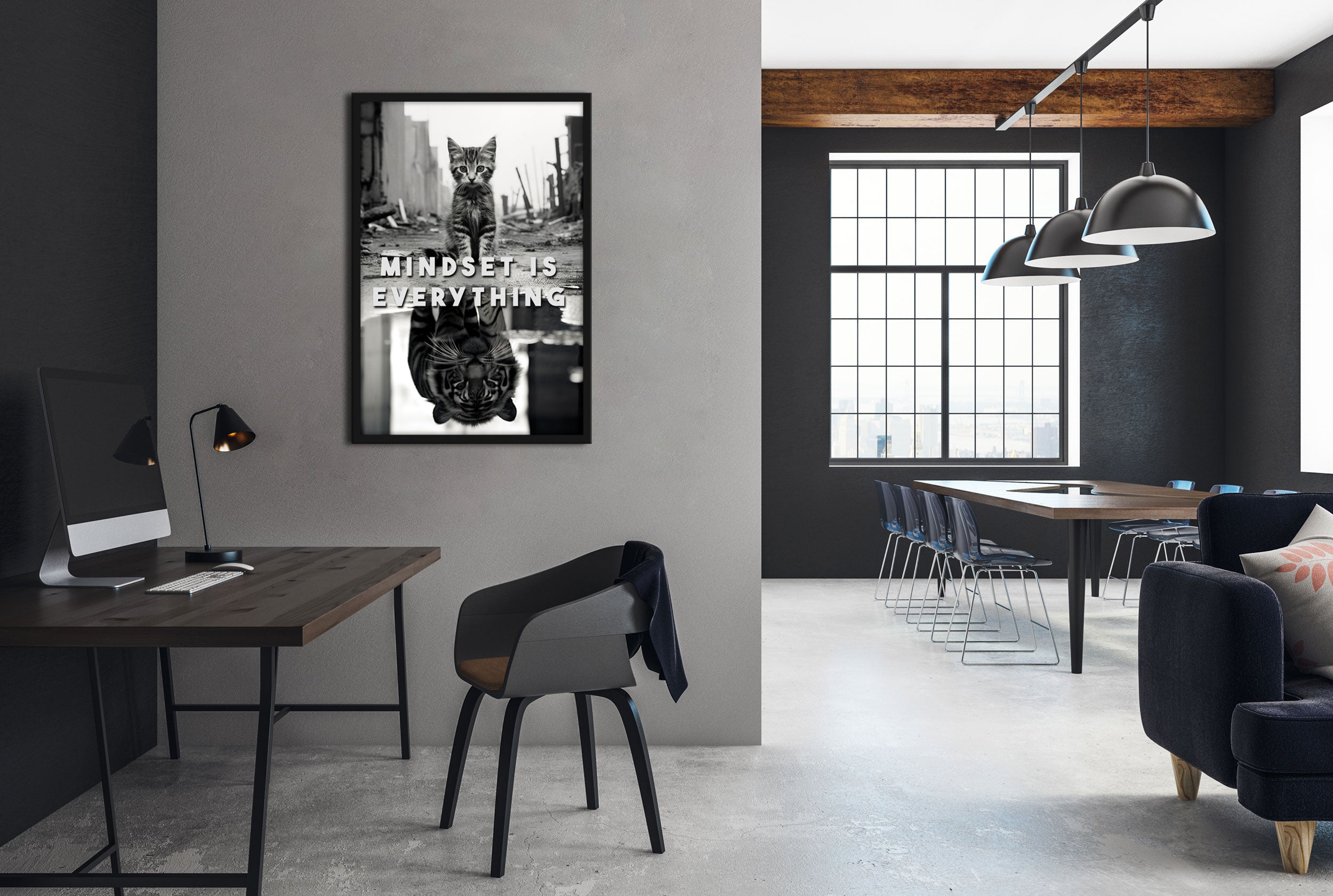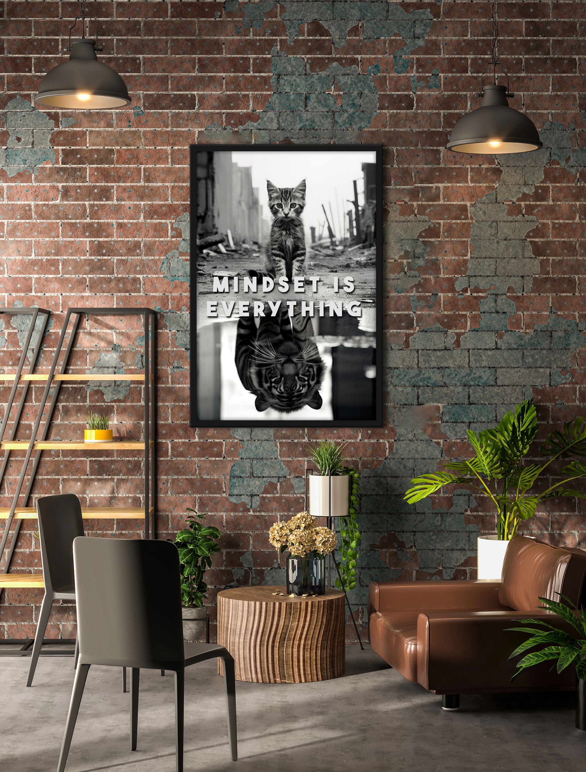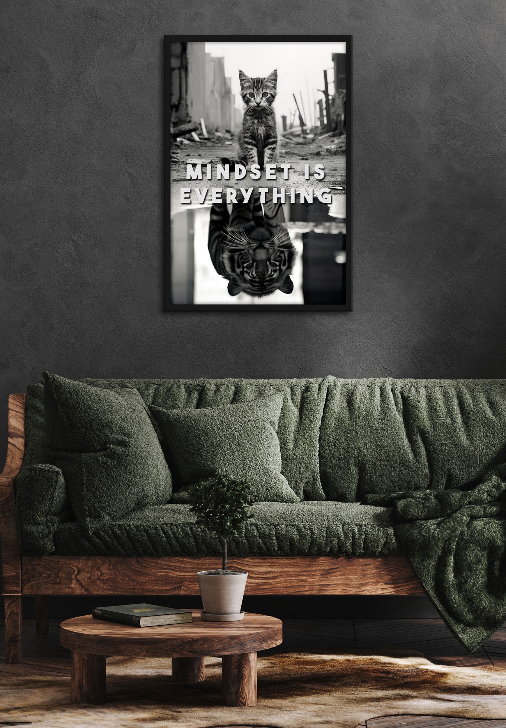 Poster im Rahmen - Mindset Is Everything - Katze & Tiger
